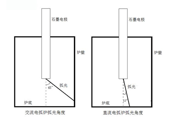 12.爐壁耐火材料使用壽命長。交流電弧爐的弧光與石墨電極的夾角為45°,非常容易打到爐壁上,從而破壞爐墻耐火材料。而直流電弧爐的弧光與石墨電極之間的夾角是12°,不會打到爐壁上,不會在爐壁上形成熱點(diǎn),因而不會破壞爐壁耐火材料。